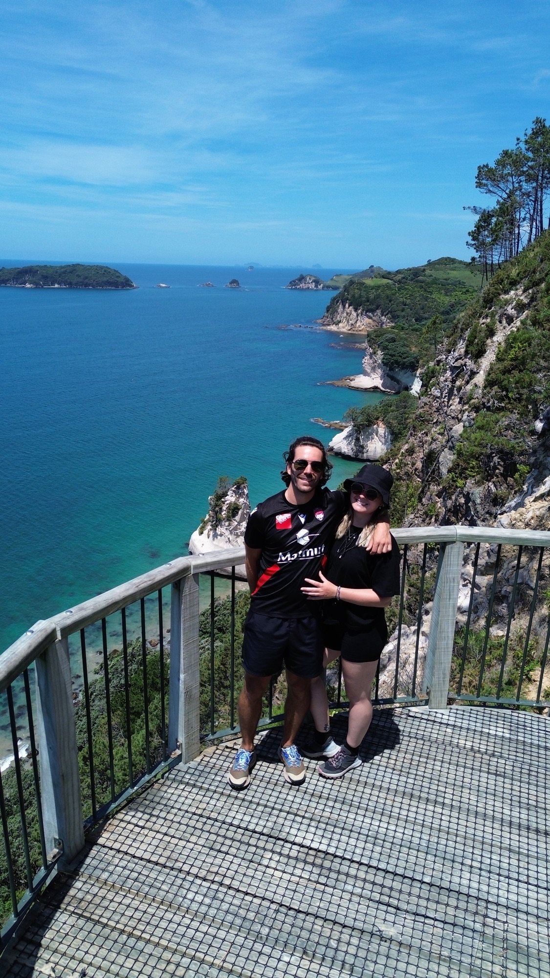 Avant de descendre sur la plage, nous faisons un détour par McHands Bay Lookout, un point de vue panoramique sur toute la côte. On vous le recommande chaudement : la vue est splendide et permet de se rendre compte de la beauté de la péninsule de Coromandel.