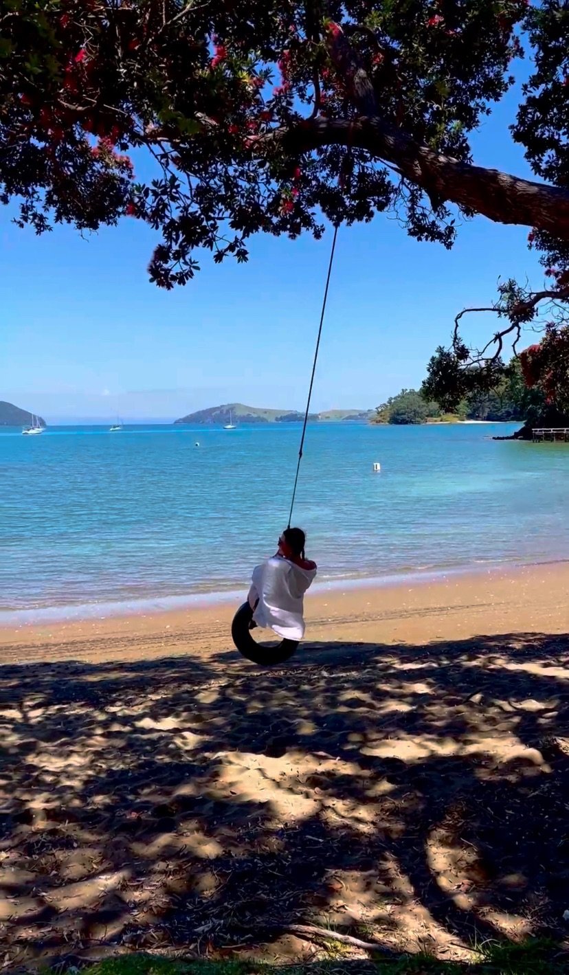 Le lendemain, pour notre dernier jour complet en van, nous choisissons de passer une journée détente à Oamaru Bay. Cette petite plage paisible est parfaite pour se reposer avant la fin du voyage : tables de pique-nique, balançoire « instagrammable » et ambiance tranquille. Nous restons ici jusqu’à 16h, avant de rejoindre Kaiaua, sur l’autre rive, pour notre dernière nuit en van au Freedom Campsite, installé directement le long de la plage.