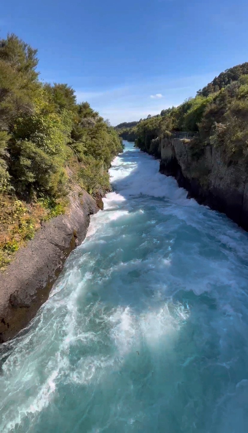 La visite est courte et agréable : un sentier piéton longe la rivière Waikato jusqu’à la cascade principale, offrant plusieurs points de vue spectaculaires sur l’eau turquoise.