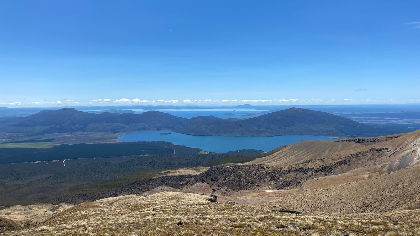 Nous avons eu beaucoup de chance avec la météo : grand soleil, peu de vent, température idéale et visibilité fantastique. Nous avons même pu apercevoir le Mont Taranaki depuis le haut du cratère rouge.